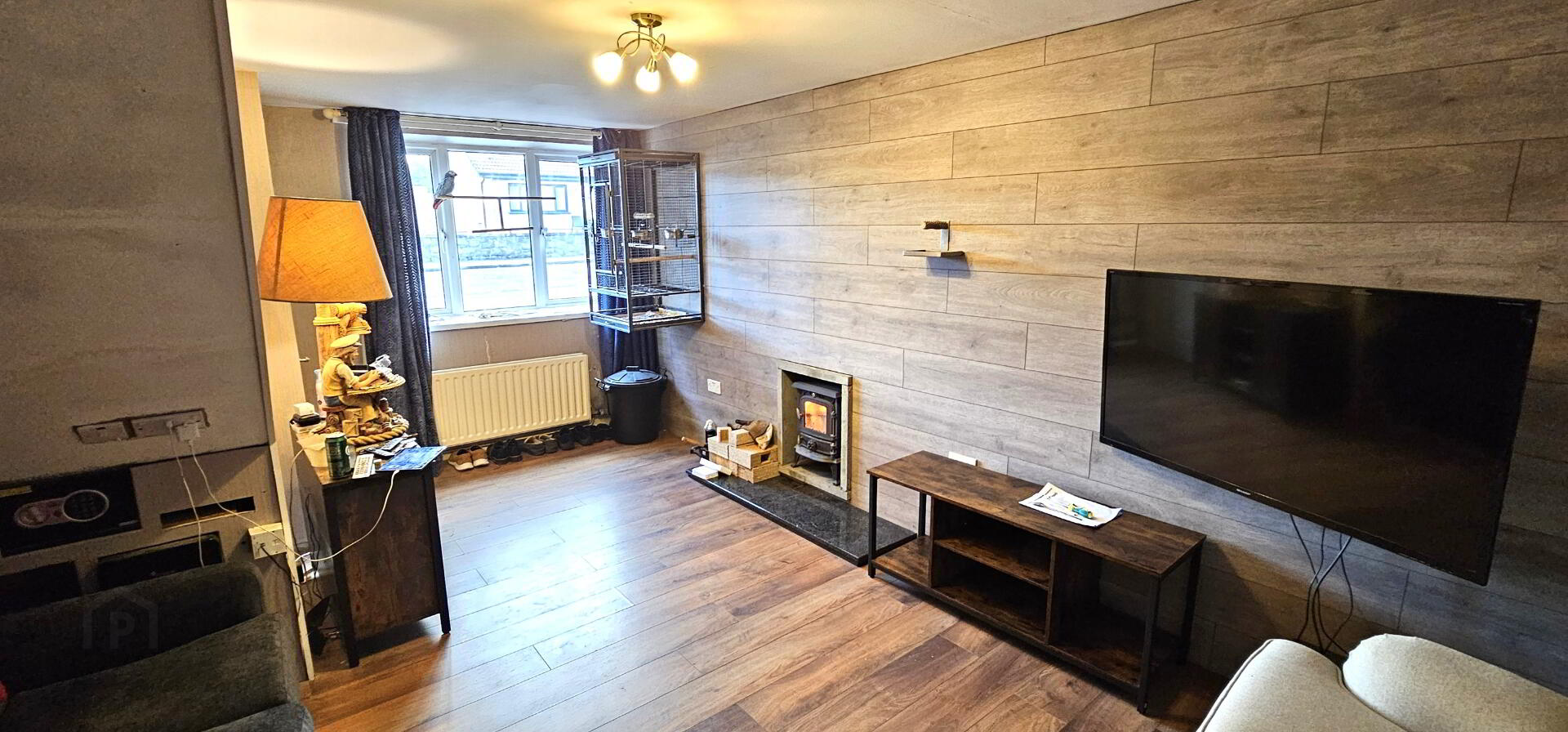 Lounge - 18'1" x 11'1" (5.52m x 3.37m). Attractive feature wood burning stove with decorative surround. Laminate wooden floor. Double radiator. Upvc double glazed window