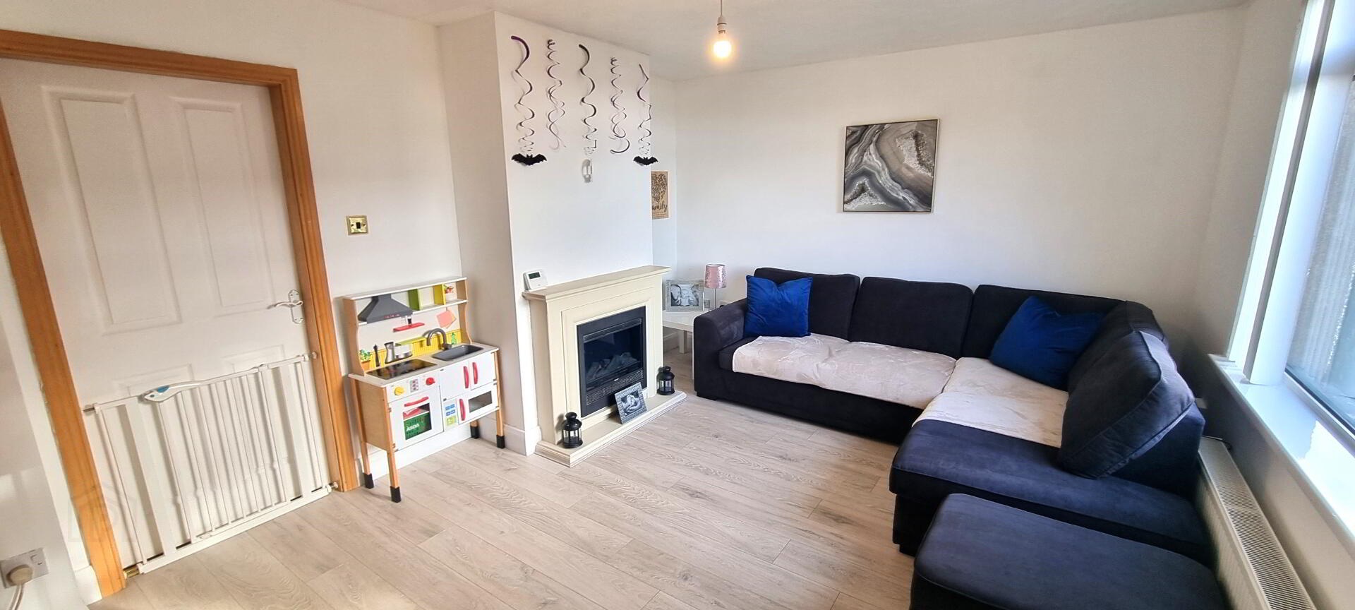LOUNGE - 16'2" x 11'6") (4.93m x 3.51m). Attractive feature fireplace with decorative surround. Laminate wooden floor. Double radiator. UVPC double glazed window.