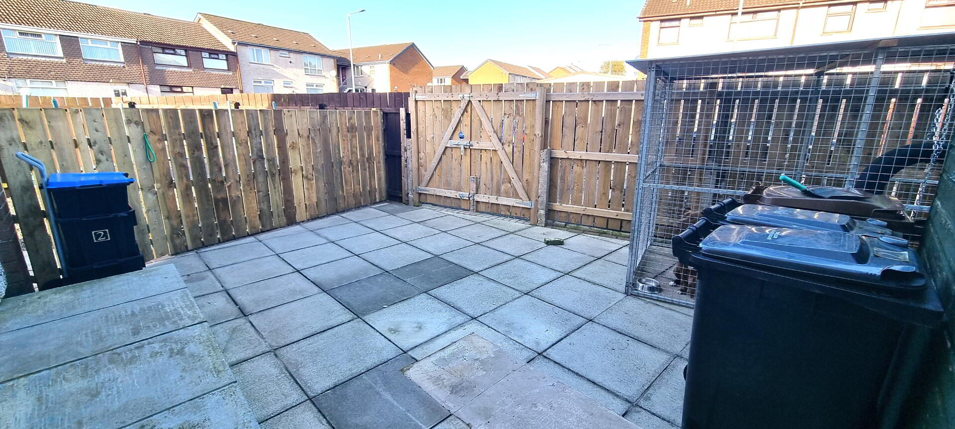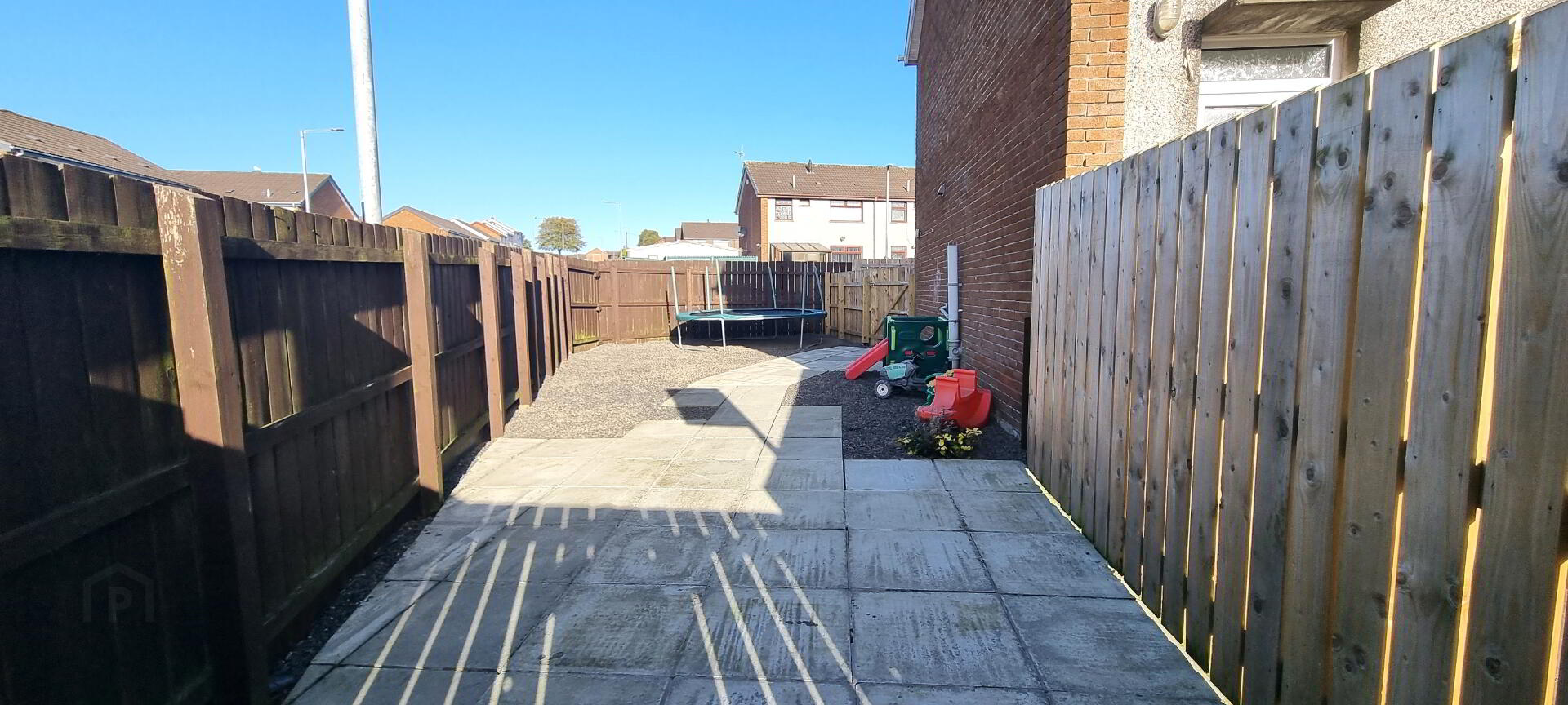 Fully paved to rear and screened by perimeter fencing. Outside water tap. Outside light.