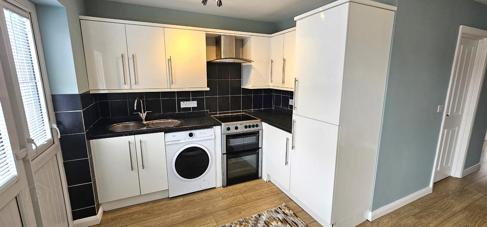 Abbey Real Estate are delighted to market for rent this modern 1st floor apartment , located in the heart of Daogh Village and therefore within walking distance to all locla amenities.   Main features include 2 bedrooms, open plan kitchen / lounge/ dining area, shower room, Upvc double glazed windows, gas heating, communal parking & outside store.