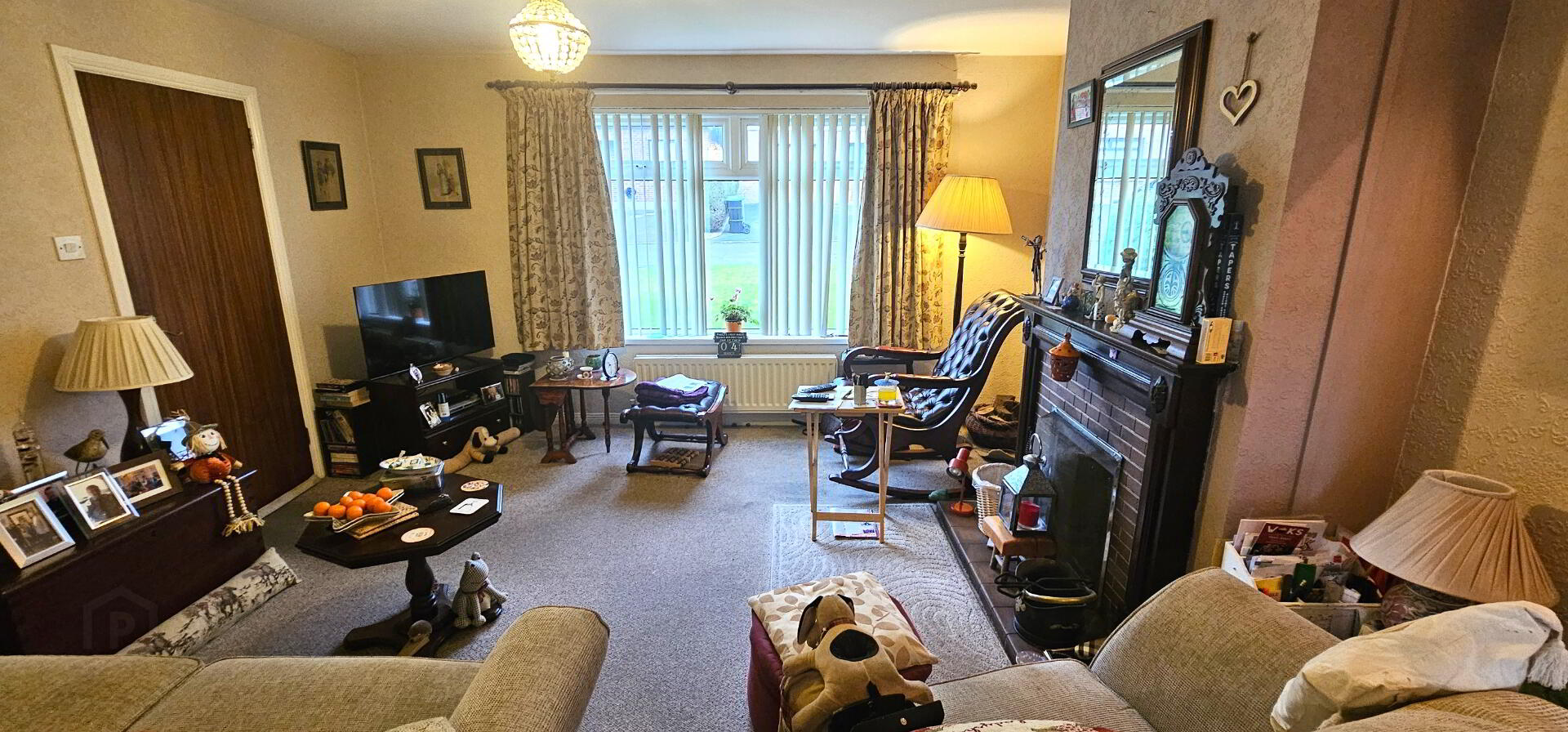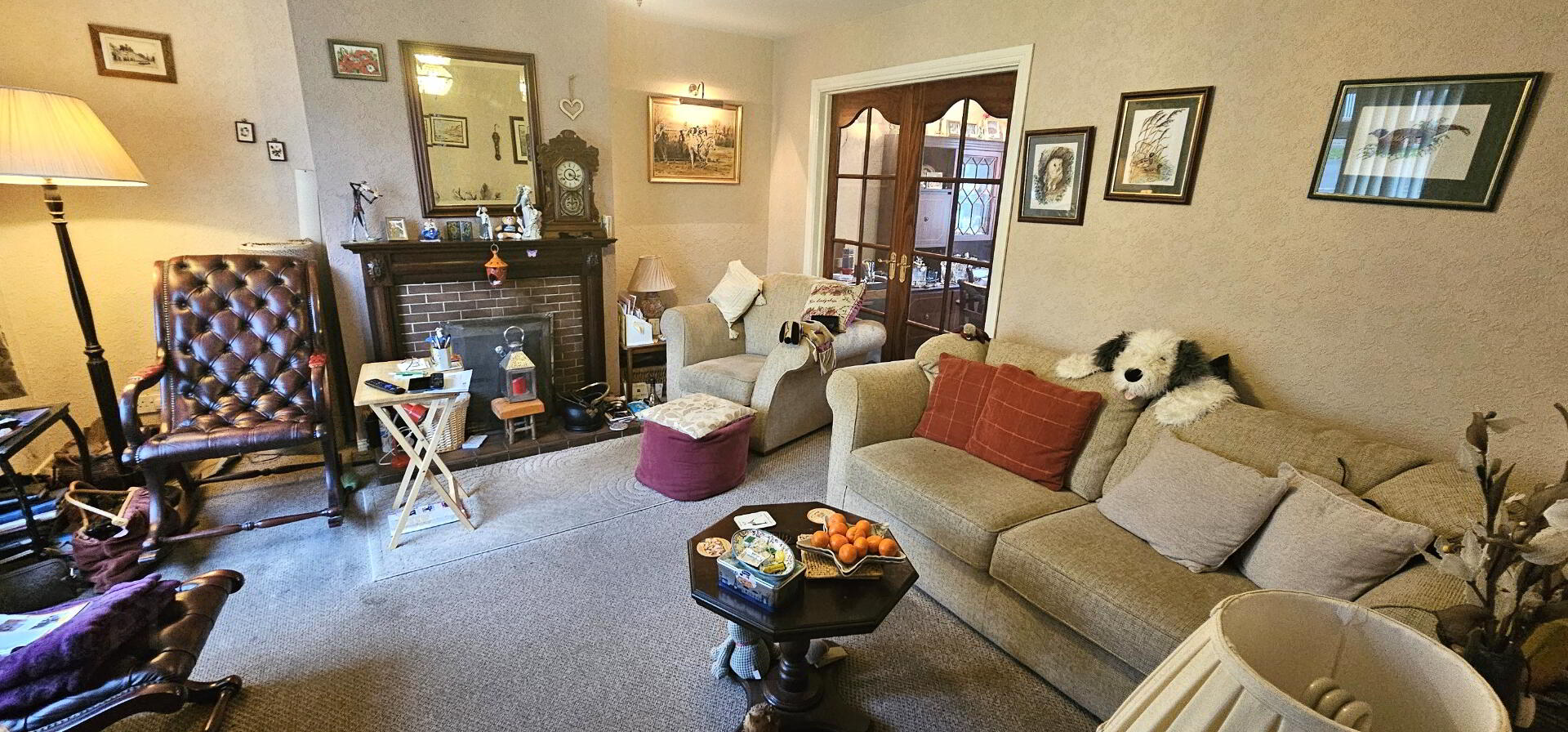 Lounge - 14'2" x 13'1" (4.32m x 3.99m). Attractive feature fireplace with decorative surround. Double radiator. Upvc double glazed window. Double French doors leading to dining room.