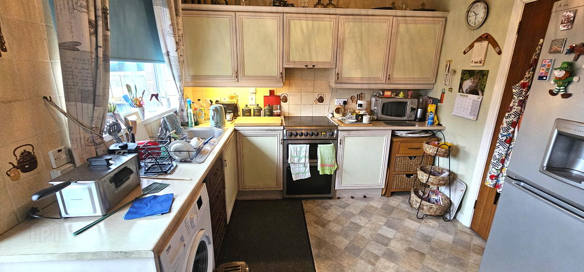 Kitchen - 11'4" x 9'2" ( 3.45m x 2.81m). Excellent range of high and low level units with single drainer stainless steel sink unit. Access for oven and hob with overhead extractor fan. Plumbed for washing machine. Access for fridge freezer. Vinyl floor covering. Complementary wall tiles. Upvc double glazed window. Upvc double glazed door leading to rear.